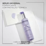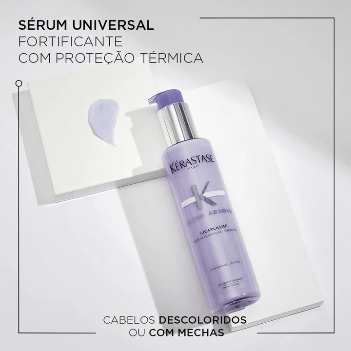 Quem disse que você tem que escolher entre cabelos loiros e modeladores térmicos? Você pode ter ambos com Blond Absolu Cicaplasme , o sérum protetor térmico para cabelos loiros da Kérastase. Sua fórmula desenvolvida para controlar o frizz possui Ácido Hialurônico e Flor de Edelweiss que trata instantaneamente as áreas danificadas da fibra e ainda contém filtro UV para proteger contra a oxidação diária e a poluição, contribuindo para a saúde e a vitalidade dos fios.
