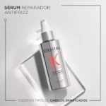 Devido ao aumento da porosidade, o cabelo processado absorve 3 vezes mais cálcio da água do que o cabelo não tratado, levando a uma overdose de cálcio prejudicial que é visível dentro e fora da fibra capilar. Kérastase Sérum Filler Fondamental tem uma dupla ação: a sua textura leve e balsâmica sela as cutículas para proteger a superfície do cabelo, ao mesmo tempo que preenche a fibra e reforça a força do cabelo. Seu cabelo é protegido dos danos causados pelo cálcio da água dura, bem como da umidade, e aquece até 230°C. O frizz é eliminado e o cabelo fica macio e flexível, fácil de pentear.