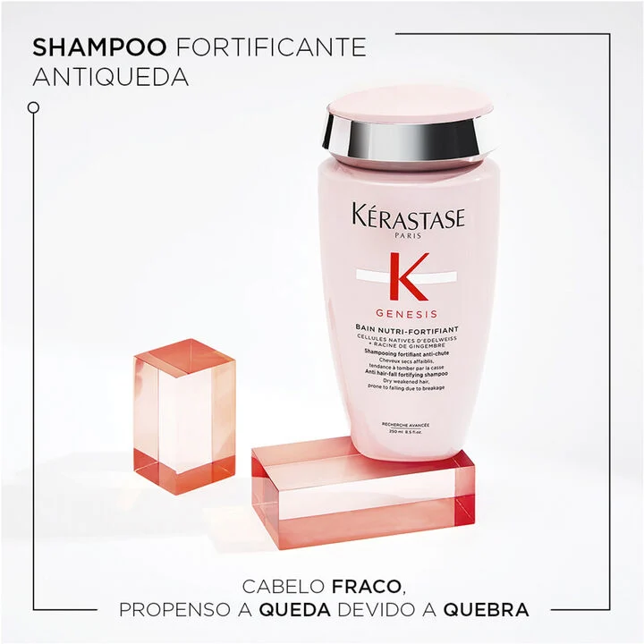 O Bain Nutri-Fortifiant é um shampoo antiqueda nutritivo, especialmente formulado para cabelos grossos ou secos com tendência à queda. Sua fórmula limpa e nutre profundamente os fios, removendo a oleosidade excessiva e proporcionando uma nutrição intensa para cabelos secos. Sua ação de limpeza suave acalma e hidrata o cabelo da raiz às pontas, deixando uma sensação leve. Com potente combinação de células nativas de Edelweiss e raiz de gengibre, este shampoo nutritivo fortalece a fibra para uma resiliência intensa, proporcionando cabelos 49% mais macios*. O cabelo é preparado para ser tratado, proporcionando brilho e toque natural aos fios.